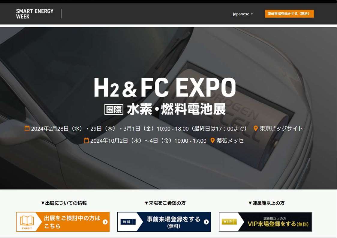 2024年2月28日(水)~3月1日(金)に東京ビッグサイトで開催される『H2 & FC EXPO 水素燃料電池展~第21回 国際水素・燃料電池展~』(東京ビッグサイト西展示棟1階・小間番号W13-81)に出展します。