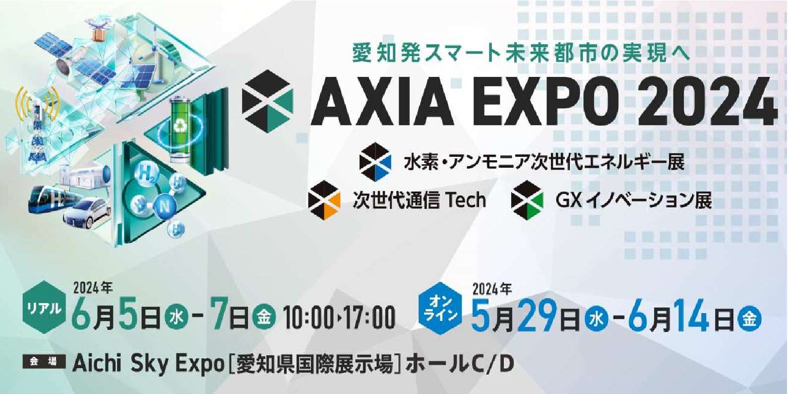 2024年6月4日(水)~7日(金)に愛知県国際展示場(Aichi Sky Expo)にて開催される『AXIA EXPO 2024』(水素・アンモニア 次世代エネルギー展・小間番号A-04)に出展します。