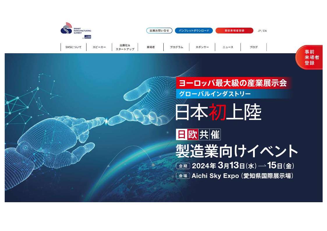 2024年3月13日(水)~3月15日(金)に愛知県国際展示場(Aichi Sky Expo)にて初開催される『SMART MANUFACTURING SUMMIT BY GLOBAL INDUSTRIE』(SMS2024_エネルギーゾーン・小間番号G-03)に出展します。